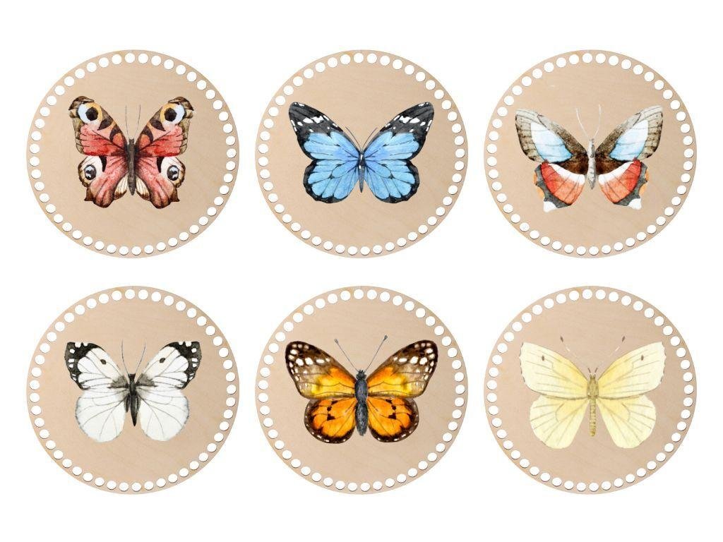 Šesť okrúhlych výrezov s farebným prírodným motívom sa hodí na výrobu štýlových podložiek, háčkovaných košíčkov a organizérov. V ponuke máme viac veľkostí a vhodné priadze u nás nájdete tiež.