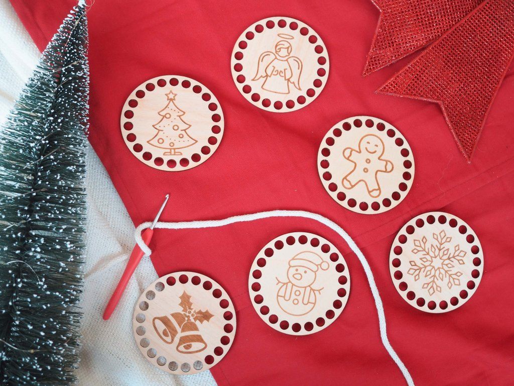 Kolekcia 6 kusov okrúhlych výrezov z brezovej preglejky s vianočným motívom slúži na výrobu štýlových podložiek, háčkovaných košíkov a organizérov. V ponuke máme viac veľkostí a vhodné priadze u nás nájdete tiež.