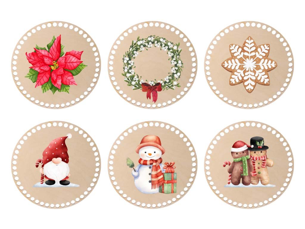 Kolekcia 6 kusov okrúhlych výrezov s vianočným motívom sa hodí na výrobu štýlových podložiek, háčkovaných košíkov a organizérov. V ponuke máme viac veľkostí a vhodné priadze u nás nájdete tiež.