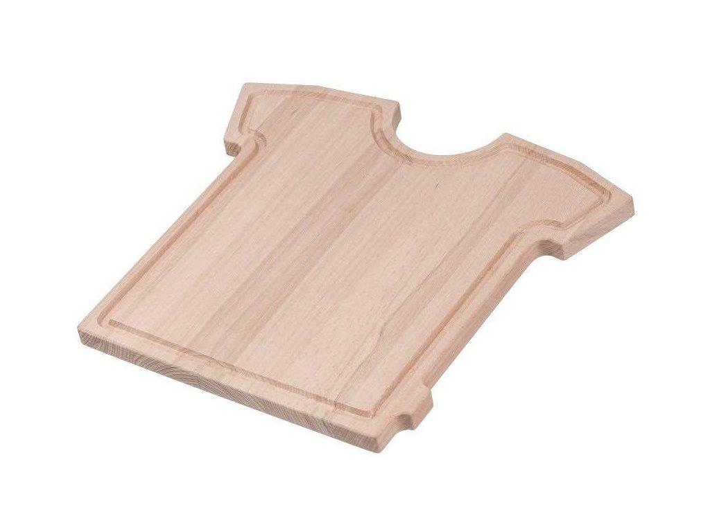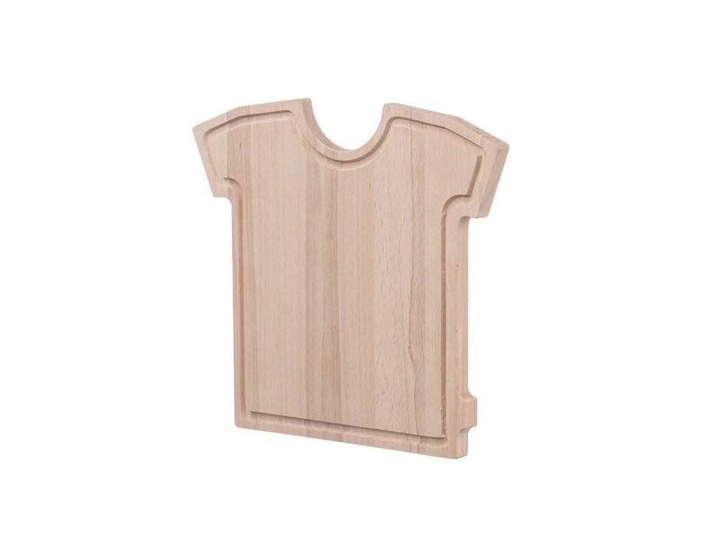Robustná doštička z kvalitného bukového dreva v tvare dresu s vyfrézovanými kanálikom je vhodná na krájanie aj servírovanie.