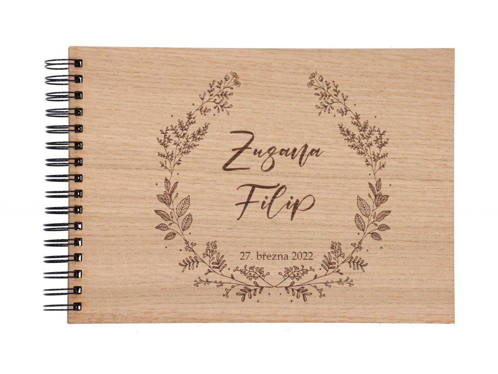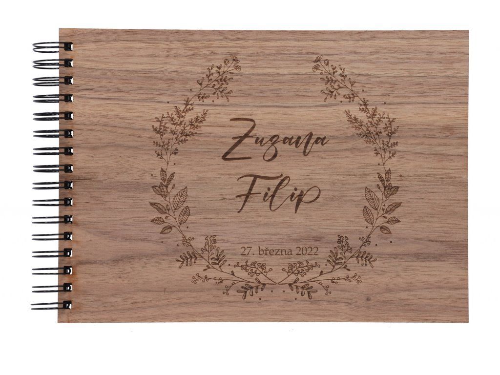 Drevené svadobné fotoalbum - kvetinový veniec