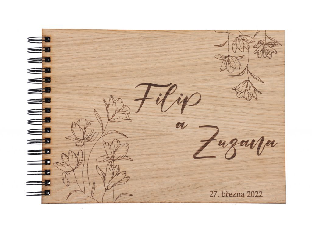 Drevené fotoalbum je zviazané pevnou čiernou krúžkovou väzbou, ktorá drží 25 tvrdých lesklých bielych listov veľkosti A4, stránky nie je možné pridať z dôvodu správneho zatvorenia. Prvá strana je vždy čierna a môžete ju použiť na odkazy, alebo svadobné verše, či citáty.