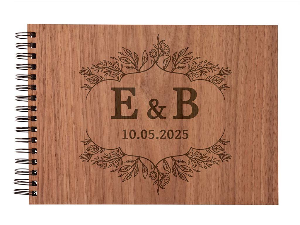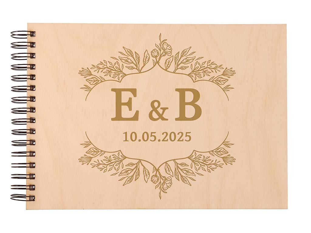 Drevené fotoalbum je zviazané pevnou čiernou krúžkovou väzbou, ktorá drží 25 tvrdých lesklých bielych listov veľkosti A4, stránky nie je možné pridať z dôvodu správneho zatvorenia. Prvá strana je vždy čierna a môžete ju použiť na odkazy, alebo svadobné verše, či citáty.