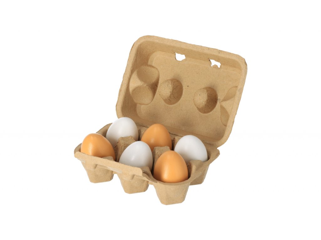 Sada 6 drevených vajíčok v dvoch farbách v kartónovej krabičke by nemala chýbať v žiadnom detskom obchodíku alebo kuchyni.