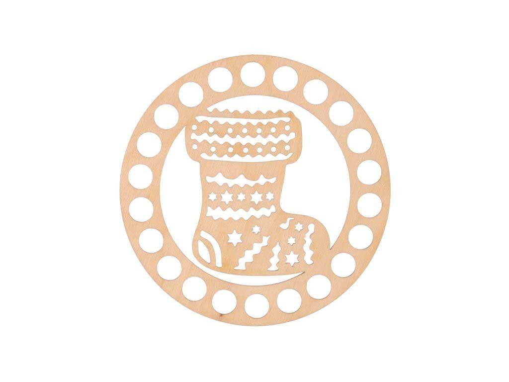Okrúhle veko na košík s vyrezávaným motívom vianočnej ponožky vyrábame z brezovej preglejky hrúbky 3 mm. Je vhodné na výrobu háčkovaných košíkov a organizérov zo špagátových priadzí. V ponuke máme rôzne veľkosti.