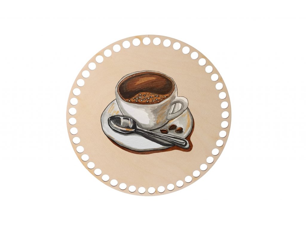 Okrúhle drevené veko na košík s motívom kávy vyrábame z brezovej preglejky hrúbky 3 mm. Je vhodné na výrobu háčkovaných košíkov zo špagátových priadzí. V ponuke máme rôzne veľkosti.