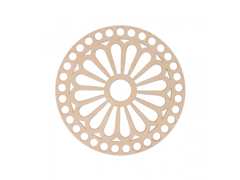 Drevené veko na košík s vyrezávaným motívom kvetu sedmokrásky vyrábame z brezovej preglejky hrúbky 3 mm. Je vhodné na výrobu háčkovaných košíkov a organizérov zo špagátových priadzí. V ponuke máme viac veľkosti.