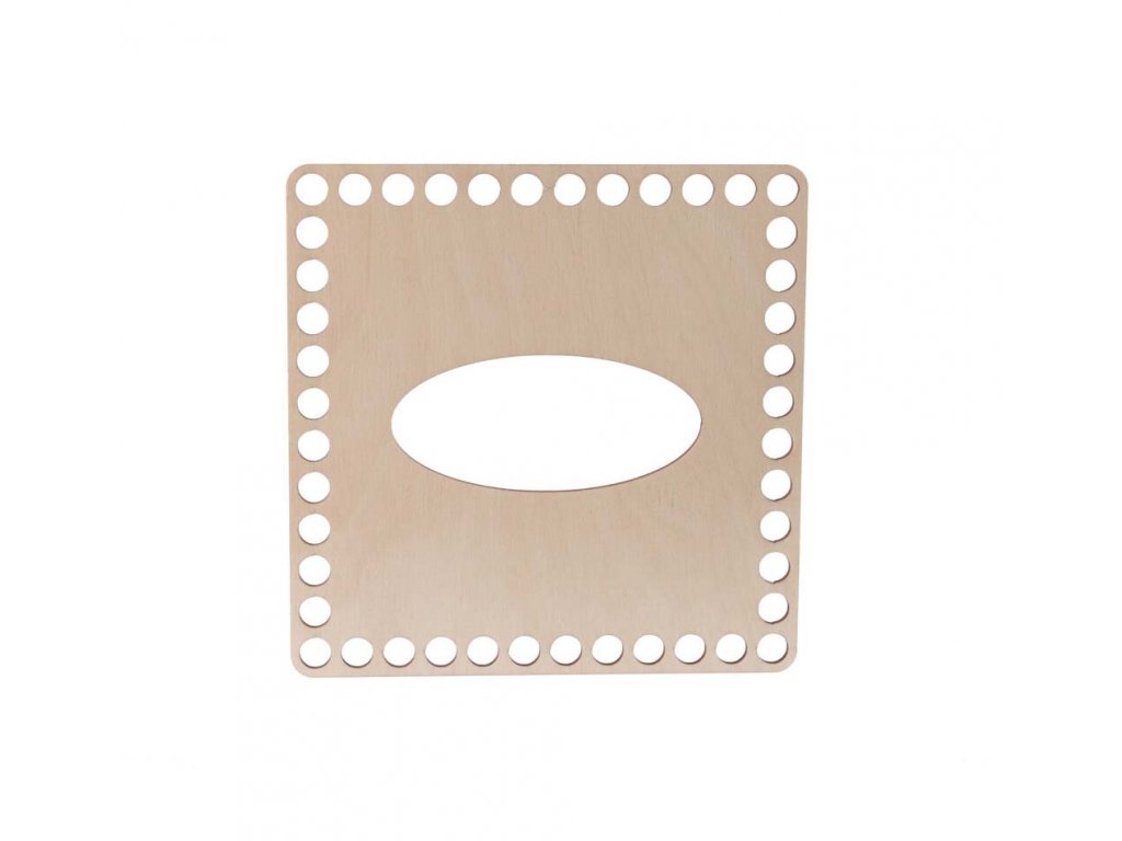 Štvorcové veko na vreckovky slúži ako základ na výrobu háčkovaných dekorácií zo špagátových priadzí. Je vyrobené z brezovej preglejky hrúbky 3 mm s otvormi s priemerom 9 mm a v ponuke nájdete rôzne veľkosti.