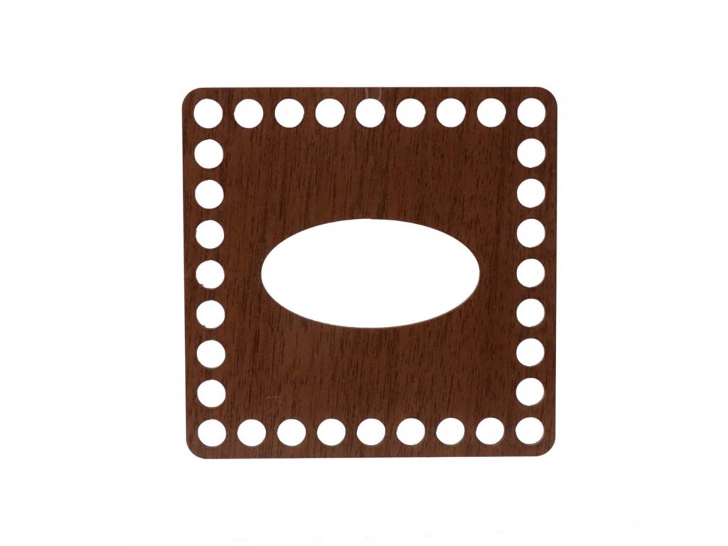 Štvorcové veko na vreckovky s dekórom tmavého orecha s otvormi s priemerom 9 mm ponúkame v rôznych veľkostiach. Je vhodné na výrobu háčkovaných dekorácií zo špagátových priadzí.
