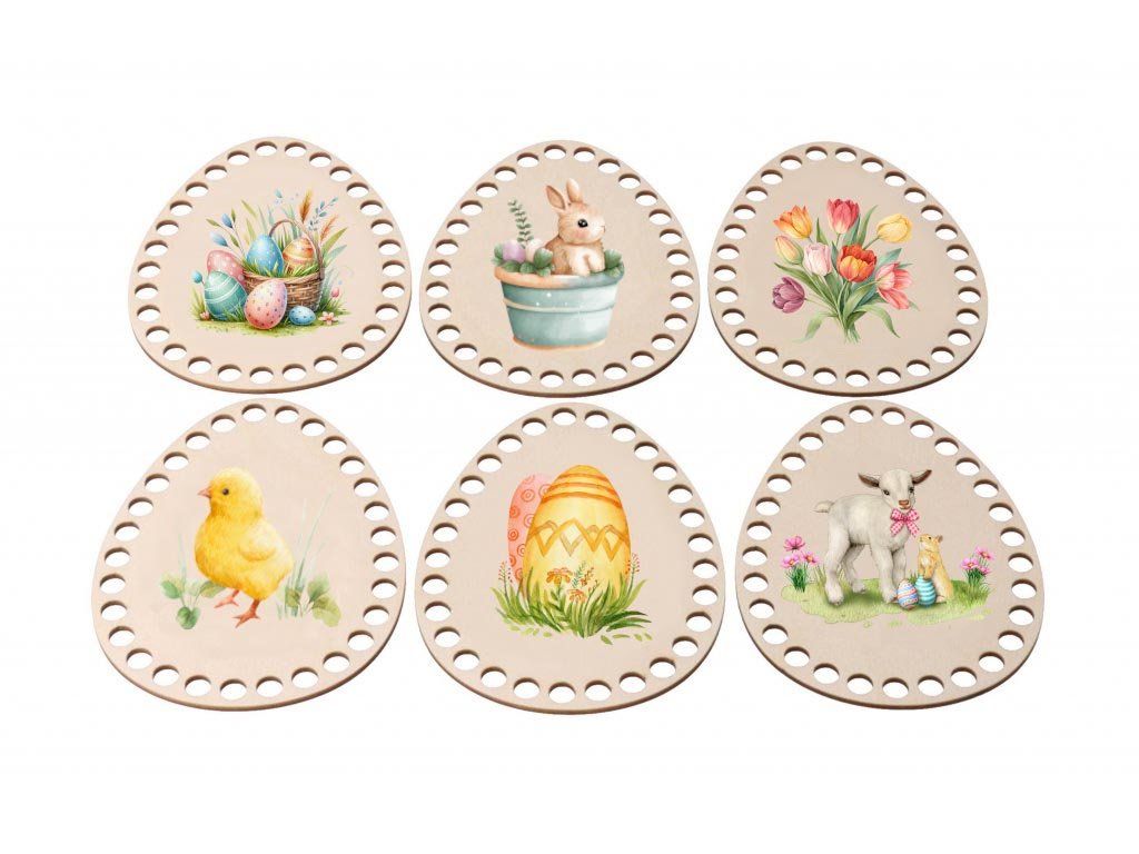 Ozdobte svoj domov originálnymi veľkonočnými dekoráciami! Naše drevené kraslice sú vyrobené z kvalitnej brezovej preglejky a sú ideálne na kreatívne háčkovanie a dekorovanie. Balenie obsahuje 6 kusov kraslíc s jarnými motívmi.
