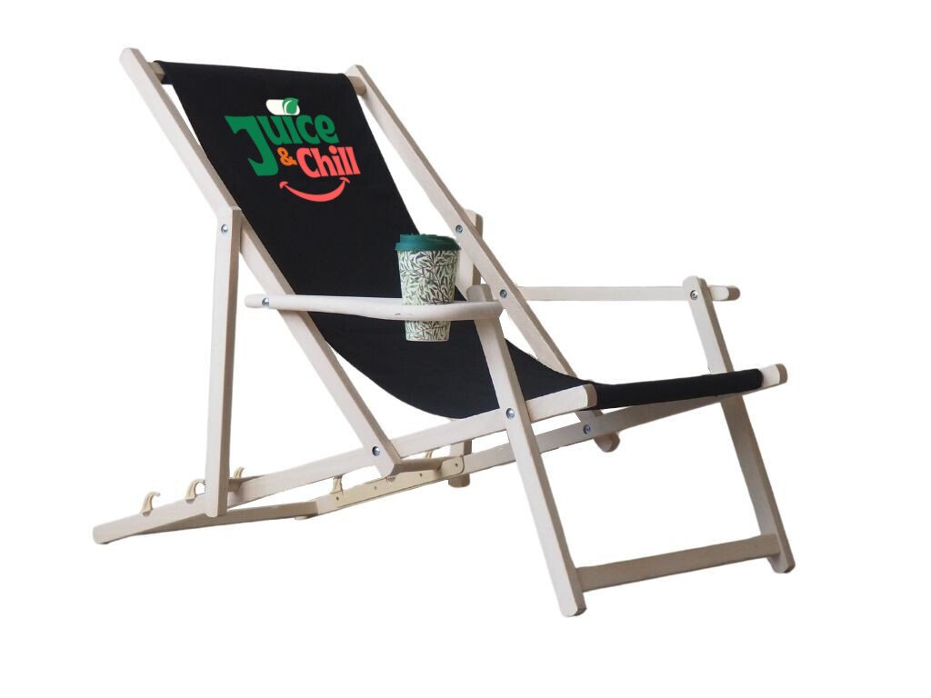 Na drevenom ležadle oceníte stabilnú bukovú konštrukciu a pevnú látku, vďaka čomu sa skladacie ležadlo pýši vysokou nosnosťou. Čierny variant má moderný šmrnc a hodí do interiéru aj exteriéru. Opierky a držiak na nápoj zaistia pohodlné sedenie. Ponúkame farebnú potlač poťahu ležadla od 10 kusov za skvelú cenu!