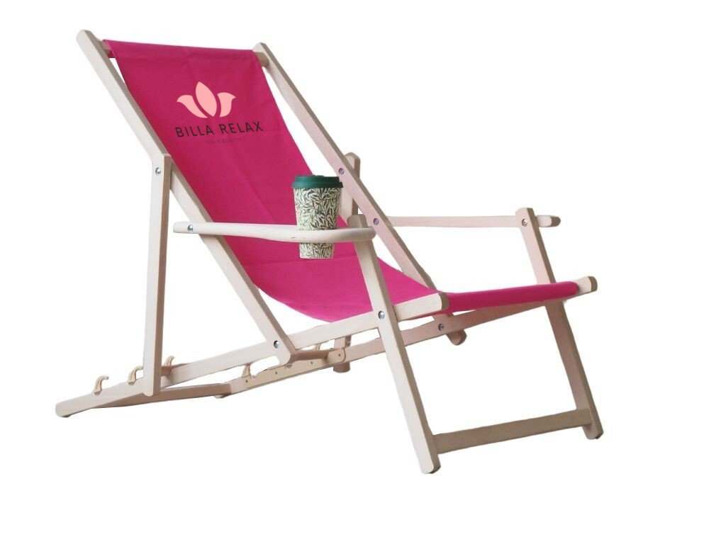 Drevené záhradné ležadlo s držiakom na nápoje - ružové