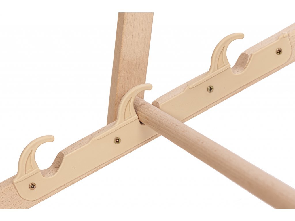 Drevené ležadlo je vyrobené z kvalitného bukového dreva. Vďaka tomu je pevné, odolné a stabilné. Pohodlné opierky zaistia komfortné sedenie s oporou pre lakte a praktický otvor s priemerom 7 cm slúži ako držiak na váš nápoj. Pohár na fotografii nie je súčasťou balenia.