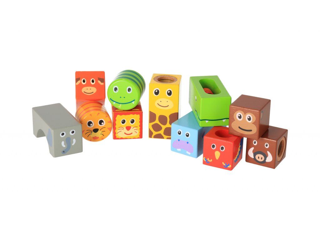 Drevené kocky s motívom safari sa stanú zábavou aj pre tie najmenšie deti. Môžu sa učiť poznávať zvieratká žijúce v zoo, objavovať zvuky a trénovať motoriku.