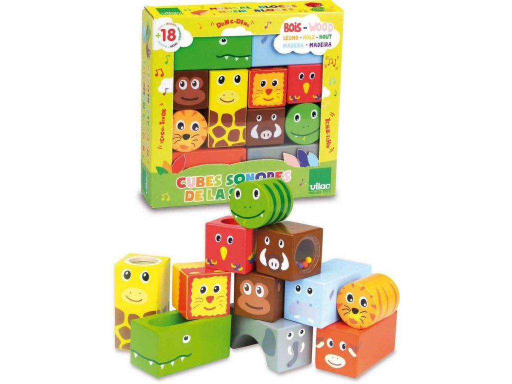 Drevené kocky s motívom zvieratiek zo savany sú vhodné už pre tie najmenšie deti. Skvele pomáhajú rozvíjať motoriku a predstavivosť, deti môžu skúmať zvuky alebo napodobňovať, čo sa deje v zoo.