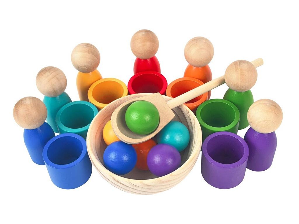 Farební panáčikovia zo dreva hravou formou pomáhajú deťom rozvíjať motorické zručnosti a vnímanie farieb. Hra je navrhnutá podľa princípov Montessori pedagogiky a pomáha deťom budovať si zdravý vzťah k učeniu aj hre.