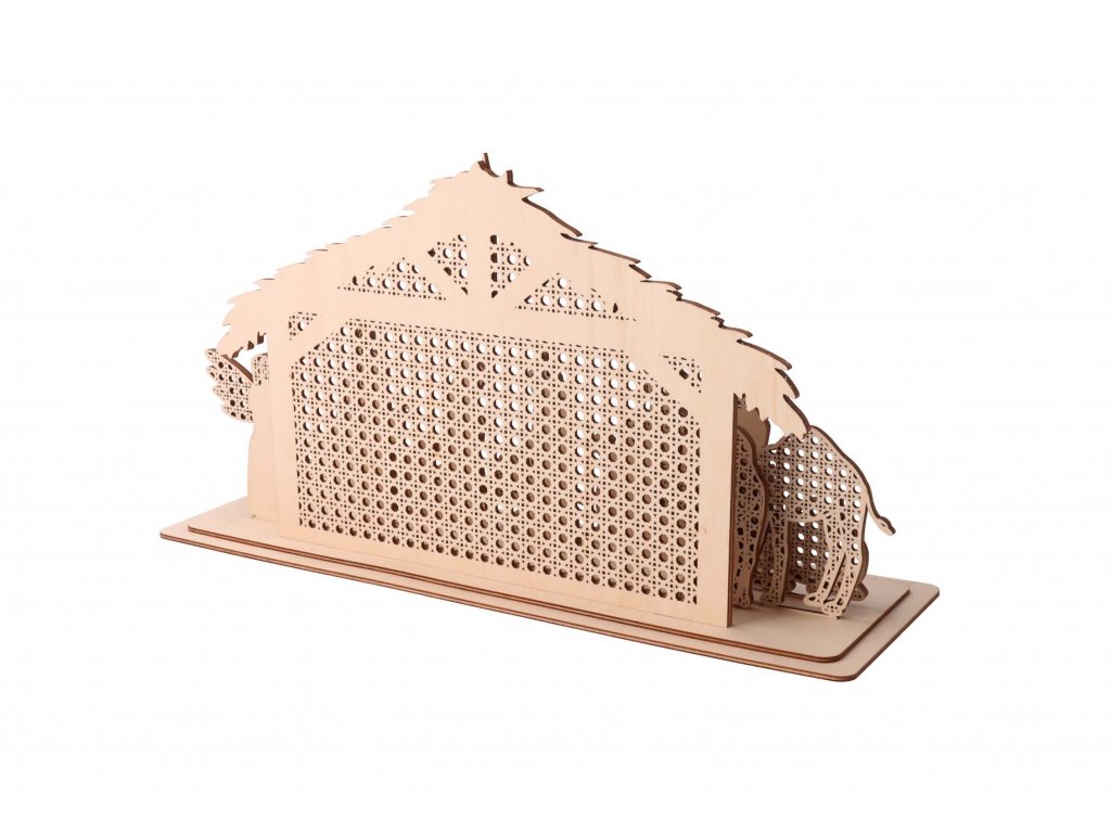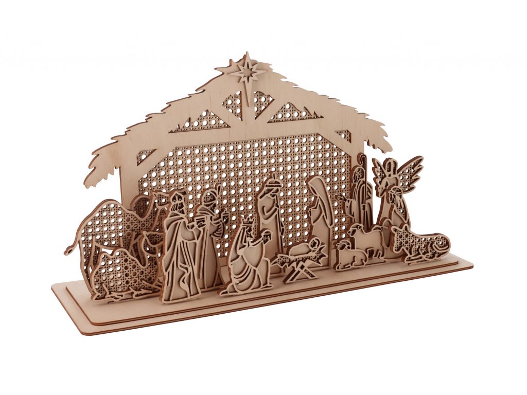Na výrobu betlehemu bola použitá brezová preglejka hrúbky 3 mm, jednotlivé vrstvy sú pevne spojené kvalitným lepidlom. Vďaka stabilnej podstave môžete betlehem postaviť na okenný parapet, poličku alebo komodu.