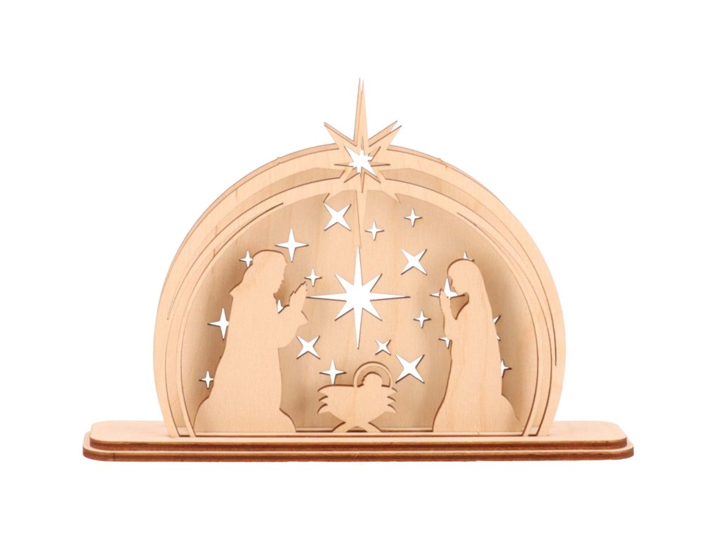 Betlehem je vyrobený z prírodnej brezovej preglejky hrúbky 4 mm. Pomocou farieb a kreatívnych techník si ho môžete dozdobiť podľa vlastných predstáv.
