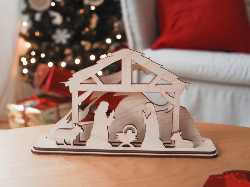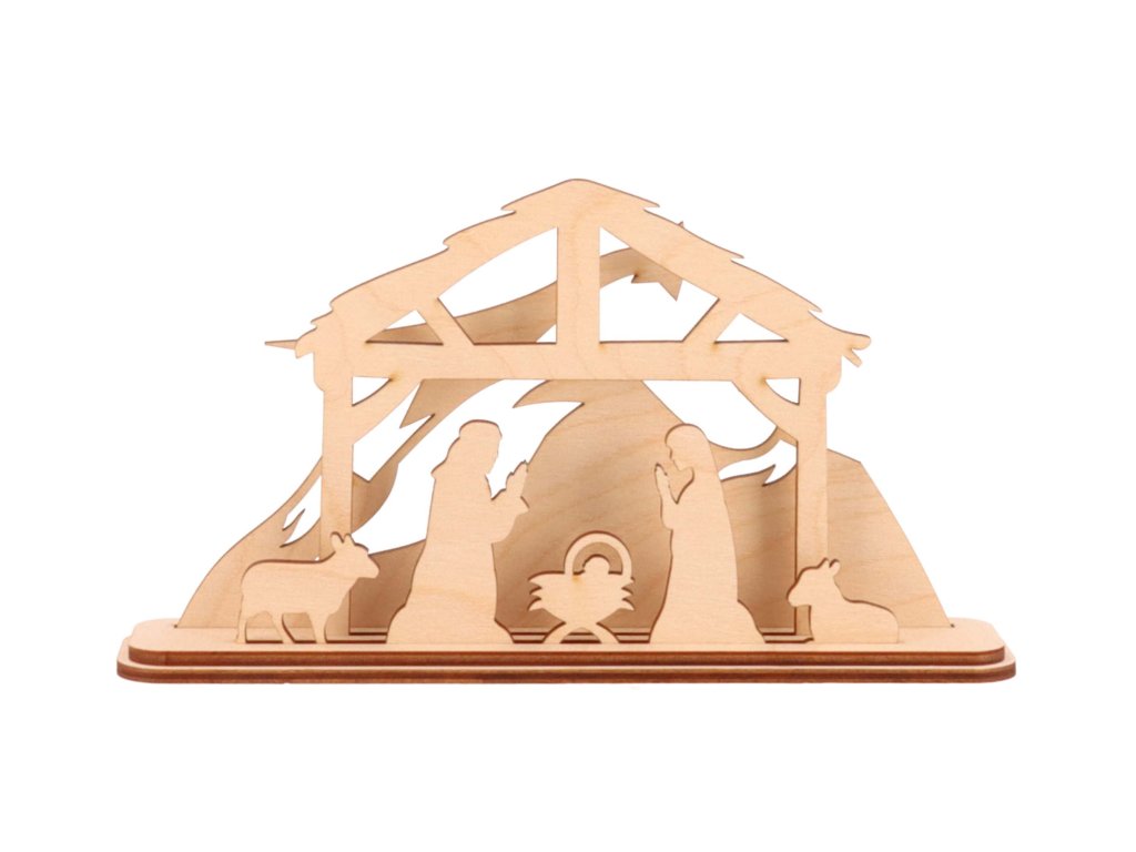Tradičný vianočný betlehem z brezovej preglejky je krásnou sviatočnou dekoráciou v mnohých domácnostiach. Drobné detaily sú precízne vyrezané laserom a vďaka pevnému podstavcu môžete betlehem postaviť na okenný parapet, poličku alebo komodu.