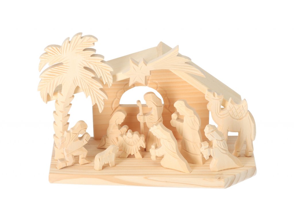 Vianočný betlehem je vyrobený z borovicového a lipového masívu. Figúrky sú ručne opracované a zdobené a každý kus je tak nezameniteľný originál.