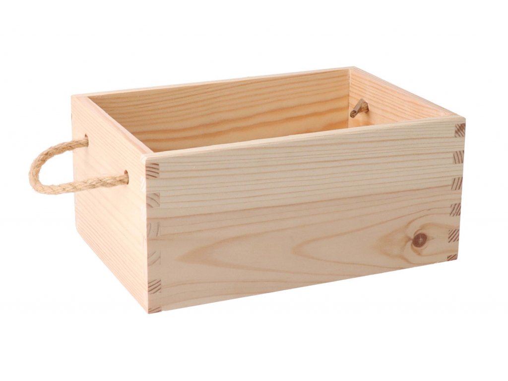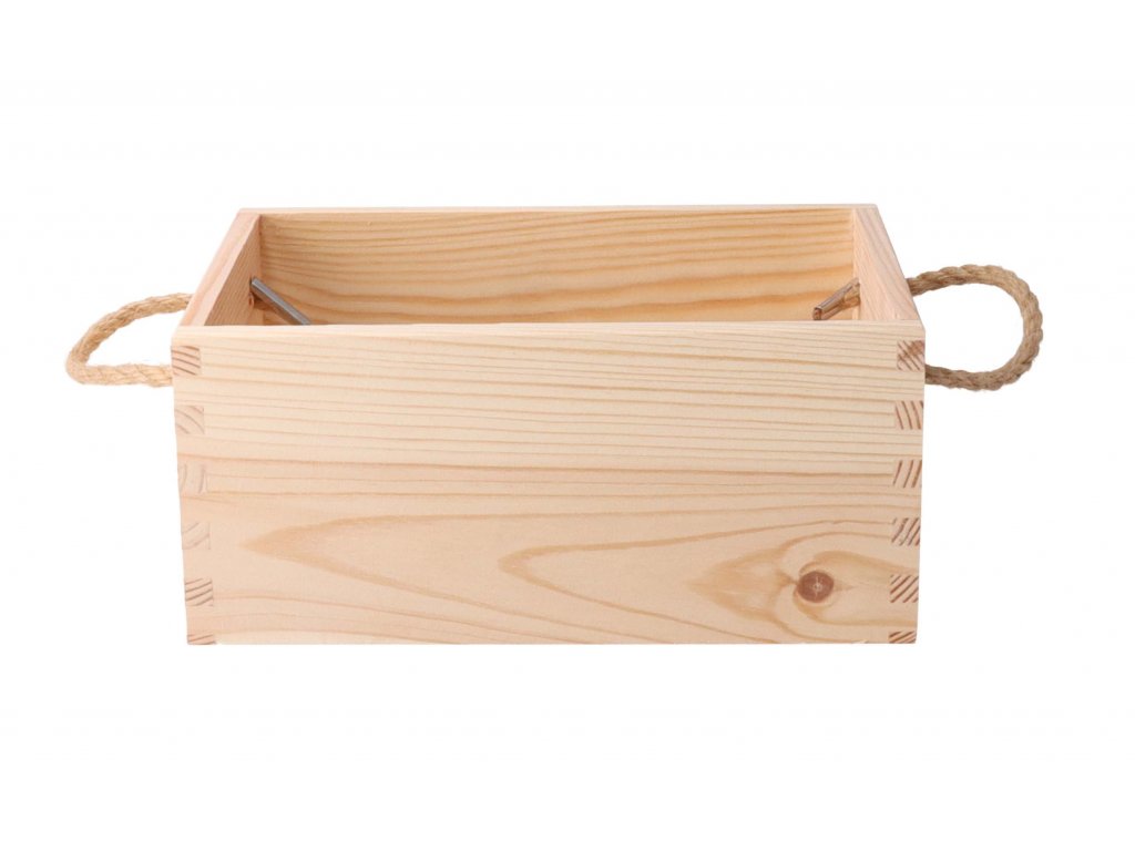 Praktický box z borovicového dreva vám pomôže udržať poriadok a zároveň prinesie do interiéru hrejivosť. Povrazové úchyty sú praktické a zároveň dodávajú boxu dekoratívny vzhľad.