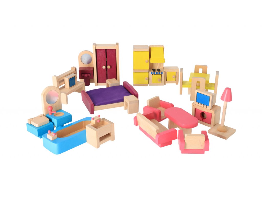 Obsahuje 26 kusov dreveného vybavenia bytu. Všetko od umývadielka po sedaciu súpravu.