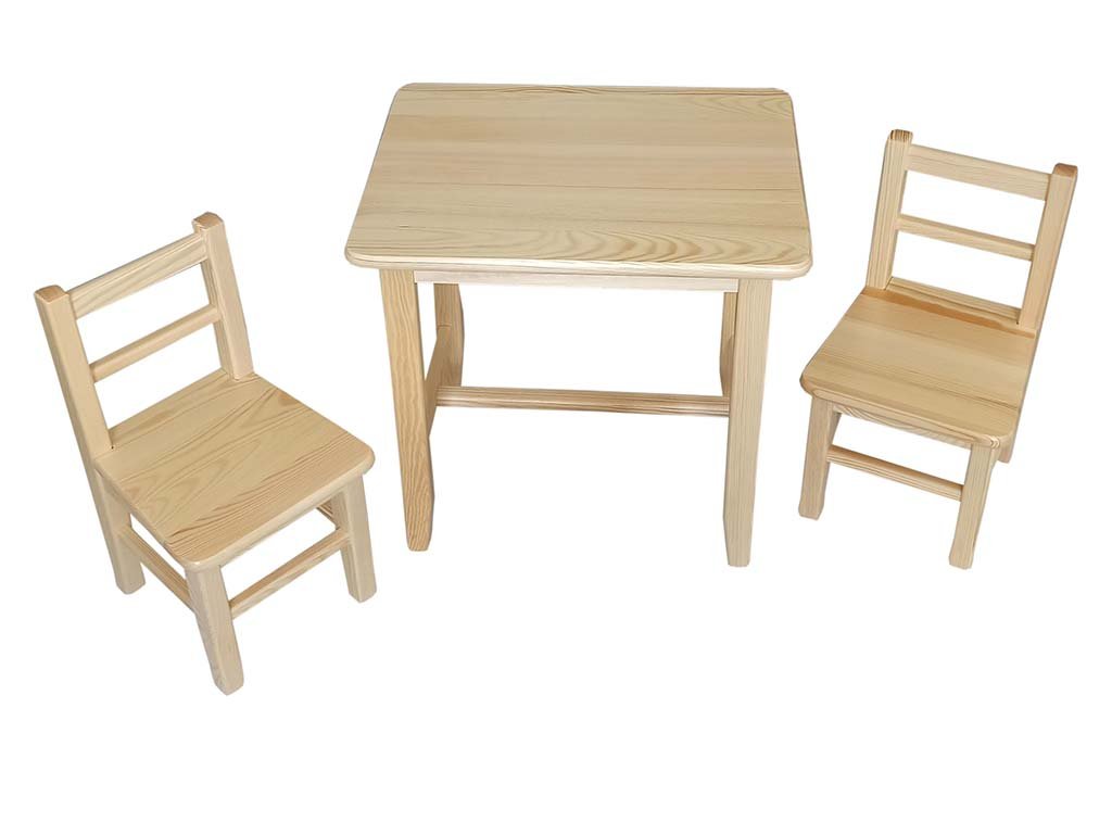 Komplet stolíka a stoličiek je vyrobený z kvalitného borovicového masívu, ktorý je príjemne mäkký, ale zároveň dostatočne odolný.