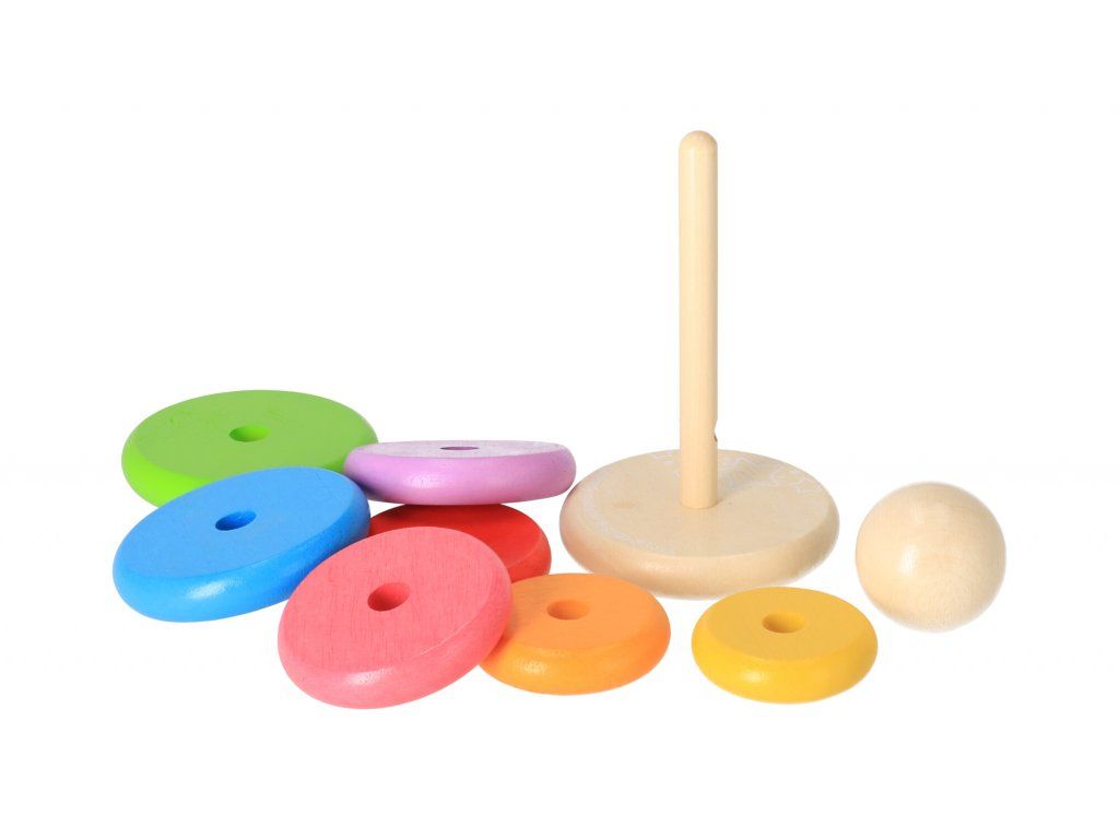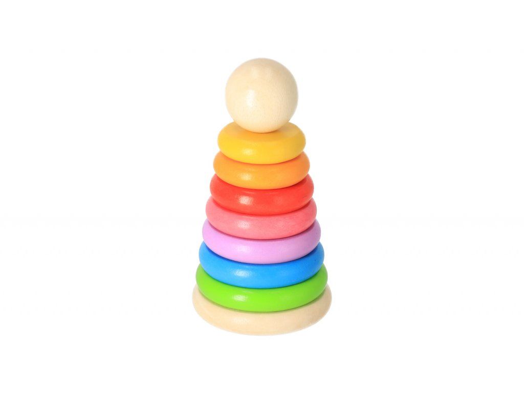 Obľúbená drevená hračka, ktorá prispieva k rozvoju motoriky, učí trpezlivosti a vďaka krásnym dúhovým odtieňom panáčika si deti môžu trénovať poznávanie farieb.