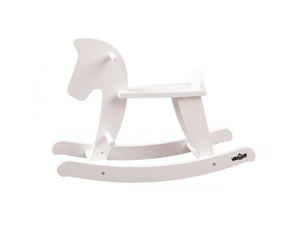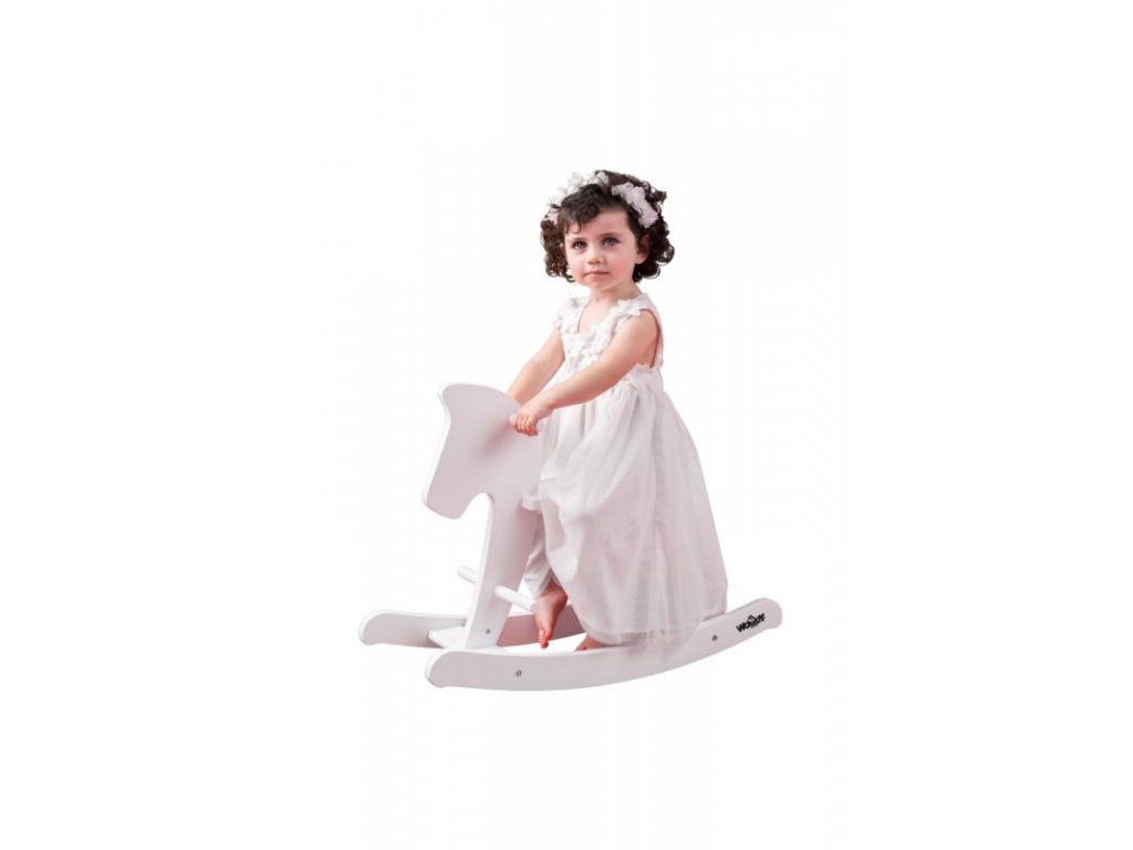 Elegantný hojdací biely koník neurazí interiér žiadnej detskej izbičky. Svojimi čistými líniami spĺňa všetky parametre modernej hračky. Jeho konštrukcia je čistá a funkčná. Tvar hojdadiel umožňuje bezpečné hojdanie, podpierky nôh pohodlie a oporu pri rozhojdávaní koníka. Samozrejmosťou sú aj držadlá pre ruky.