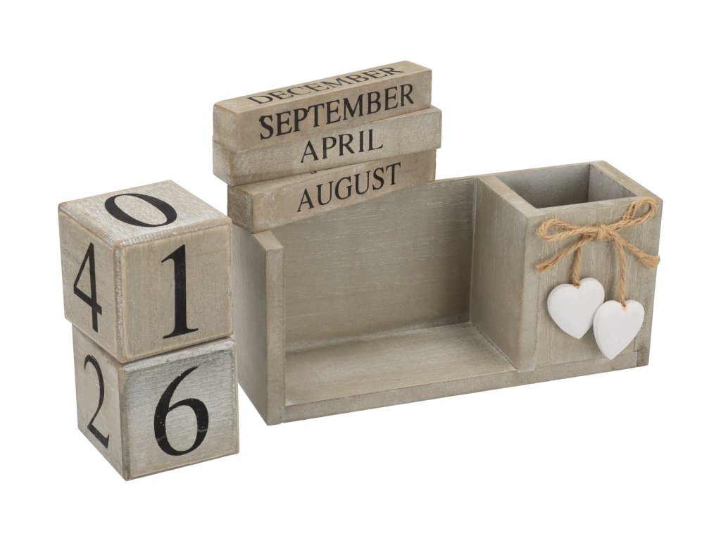 Netradičný dekoratívny kalendár je vyrobený z MDF dosky a jeho výhodou je, že nikdy nekončí. Obsahuje aj praktický priestor na perá alebo odkazy.