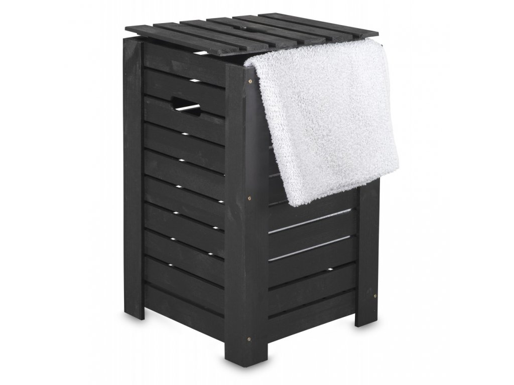 Čierny drevený kôš na prádlo zapadne do každej kúpeľne, spálne alebo technickej miestnosti.