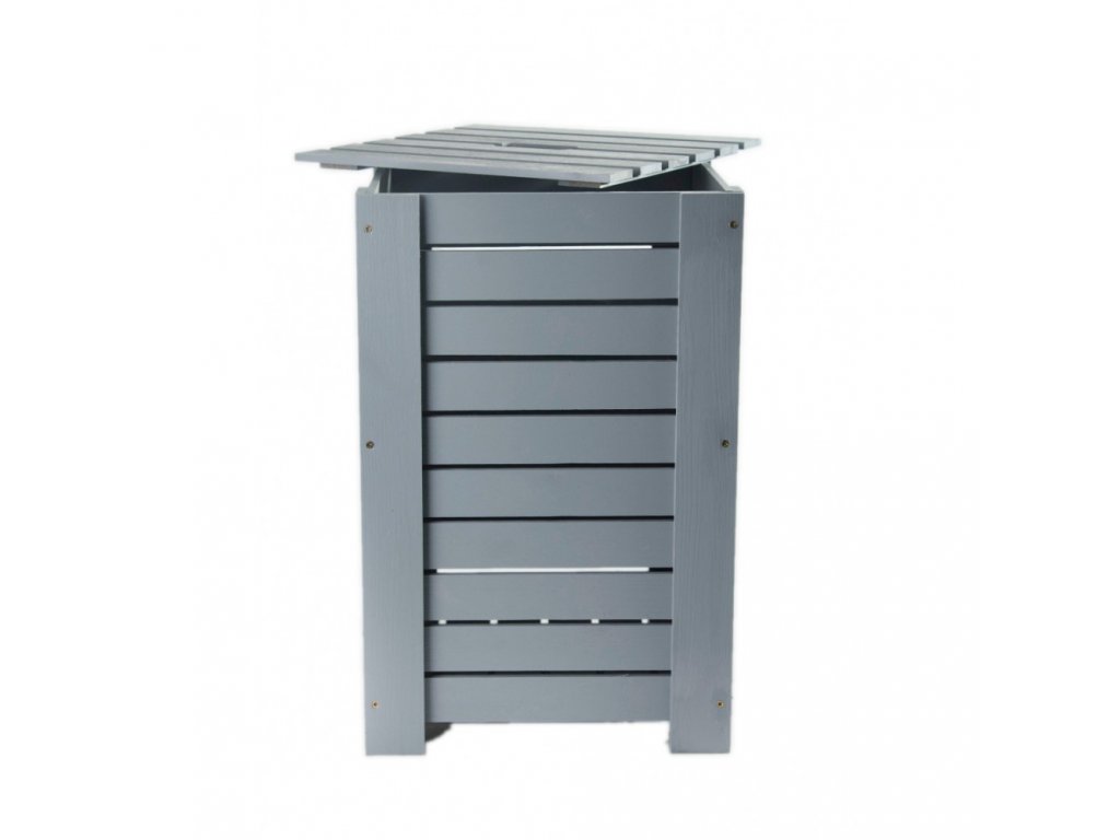 Šedý drevený kôš na bielizeň zapadne do každej kúpeľne, spálne alebo technickej miestnosti.