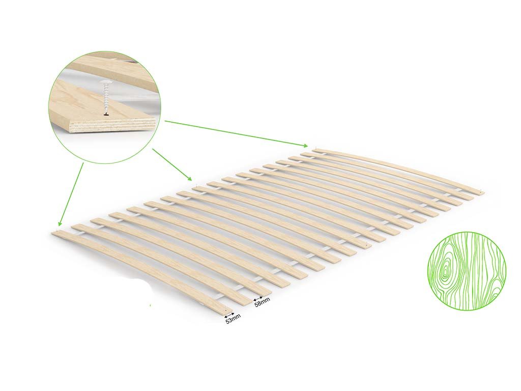 Drevený lamelový rošt ATMOWOOD z pružného brezového dreva zaisťuje optimálnu oporu a zdravý spánok. Jednotlivé lamely zaisťujú dostatočnú cirkuláciu vzduchu a predlžujú tak životnosť matraca.