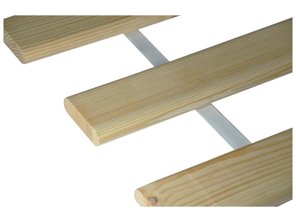 Drevený rošt je vyrobený z 12 smrekových lát, bez povrchovej úpravy lakovaním. Jednotlivé laty sú vzájomne prepojené textilným popruhom.
