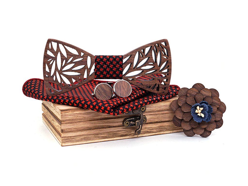 Drevený motýlik zo surového dreva s originálnym dizajnom si nájde miesto v skrini každého gentlemana.