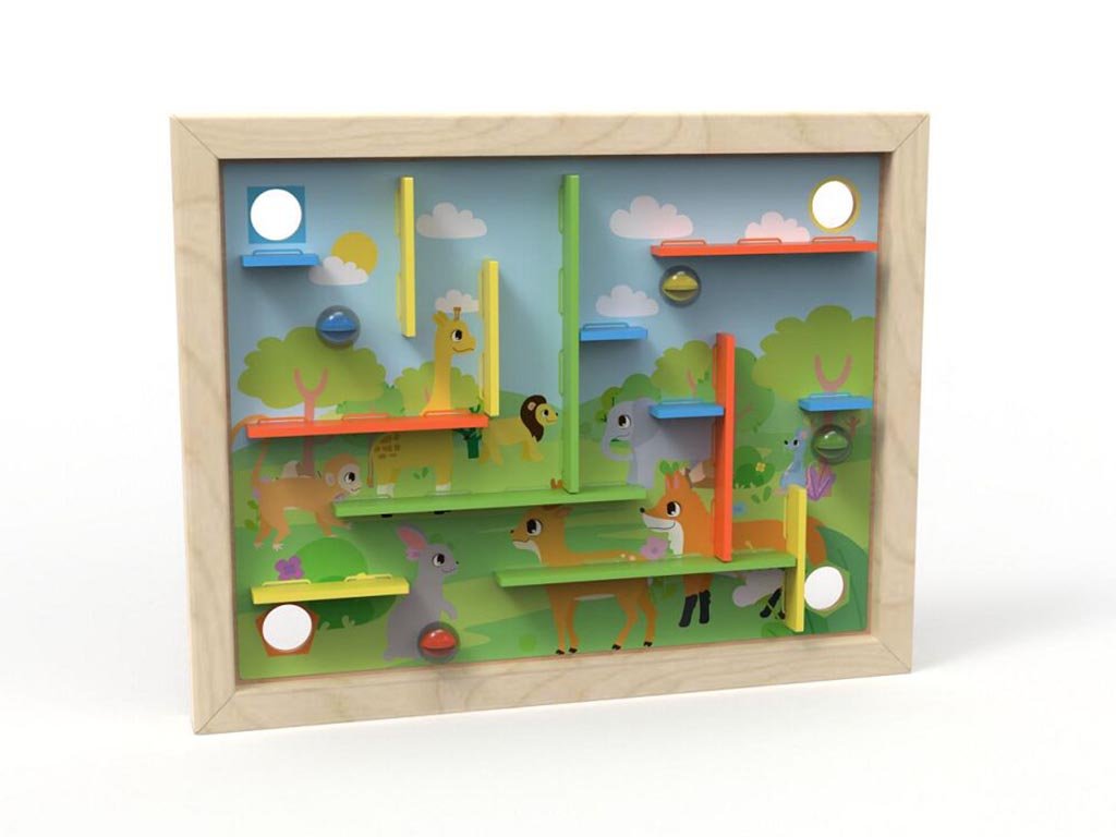 Farebný kreatívny naklápací labyrint s veselými zvieratkami prináša deťom hodiny zábavy aj veselého učenia. Pomocou nakláňania drevenej dosky deti vedú guľôčku spletitými cestičkami, prekonávajú prekážky a trénujú trpezlivosť, sústredenie aj jemnú motoriku.
