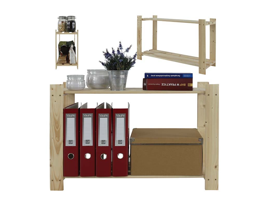Malý drevený regál ATMOWOOD z borovicového masívu je praktický úložný priestor doma aj v kancelárii. Oceníte najmä stabilnú konštrukciu z prírodného dreva a vyššiu nosnosť regálu.