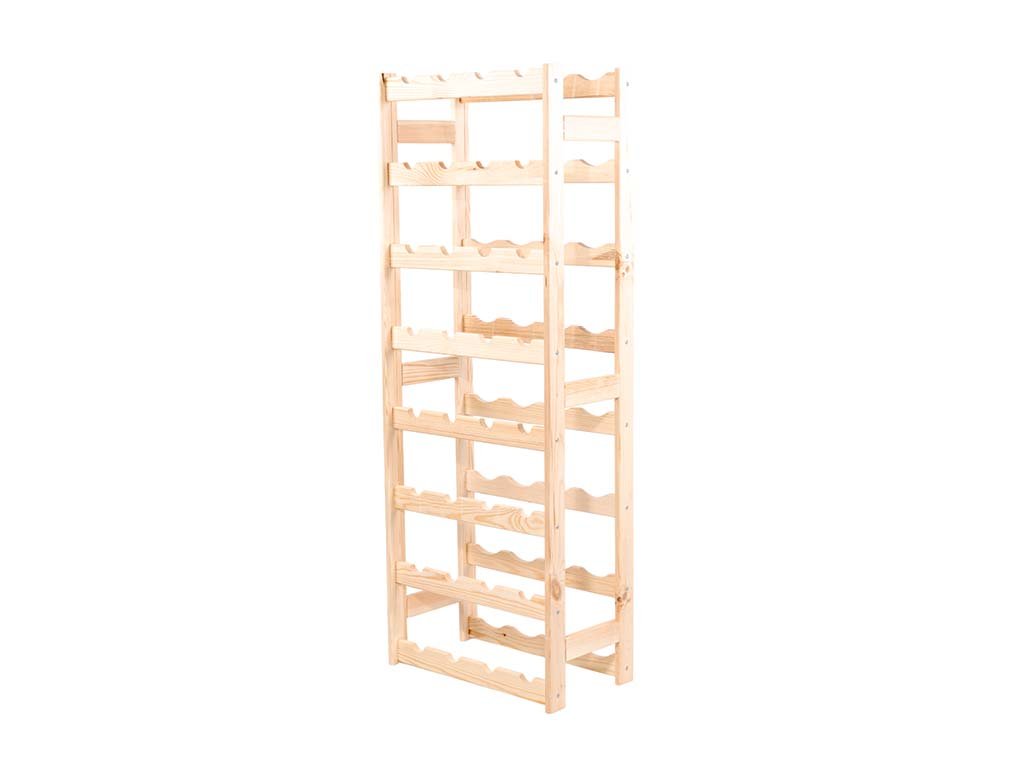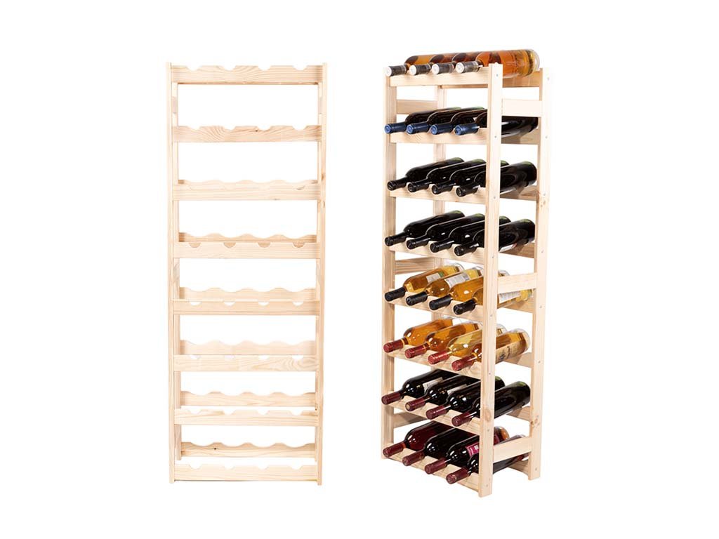 Regál na víno je vyrobený z masívneho borovicového dreva. Jedná sa o prírodný materiál, u ktorého sa môžu vyskytnúť drobné farebné odlišnosti a iné prirodzené vlastnosti dreva.