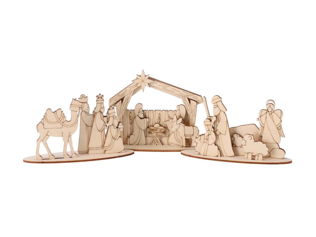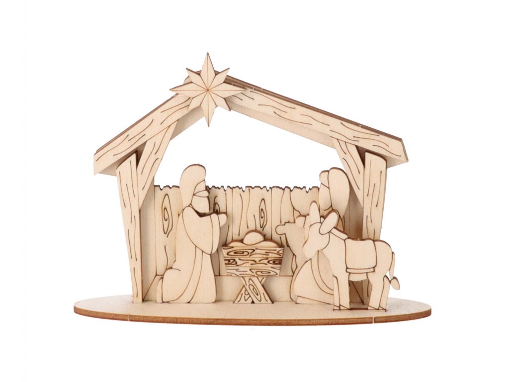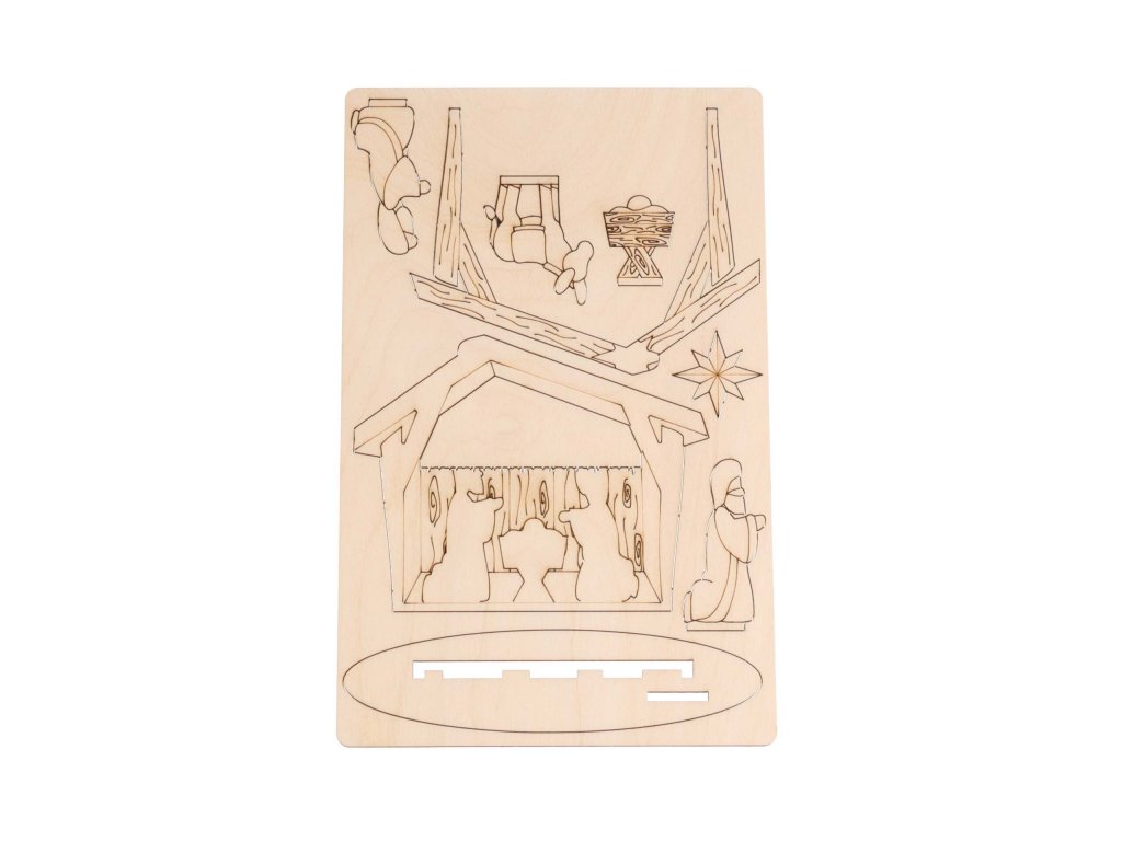 Drevený skladací betlehem je vyrobený z 3 mm brezovej preglejky a môžete si ho dozdobiť podľa vlastných predstáv.