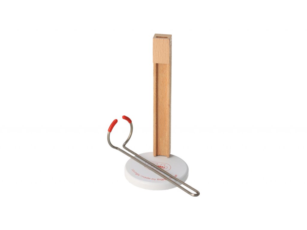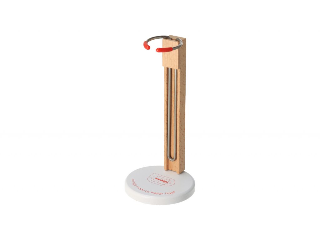 Originálny stojan na bábiky vyrobený z dreva a kovu.