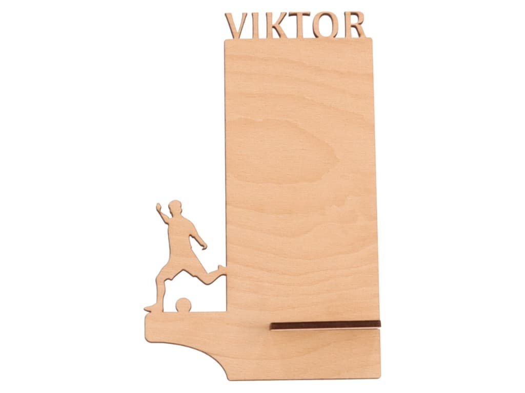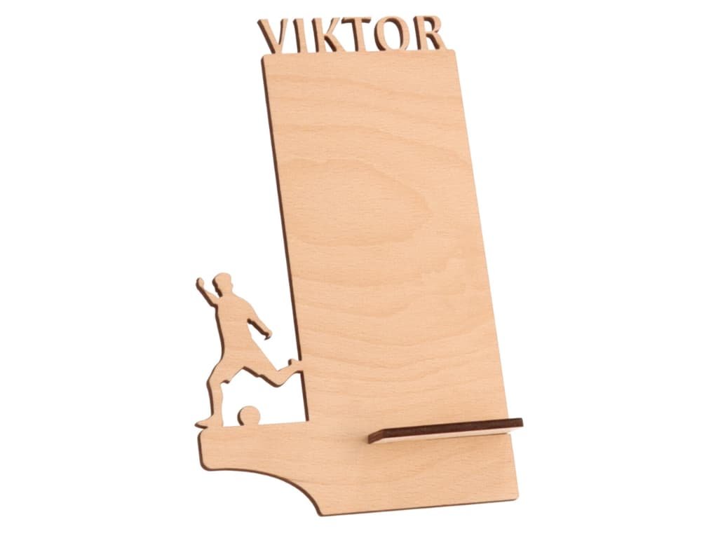 Majte svoj mobilný telefón uložený štýlovo. Drevený stojan s vlastným športovým motívom a menom je vhodný domov aj do kancelárie. Radosť urobí aj ako darček.