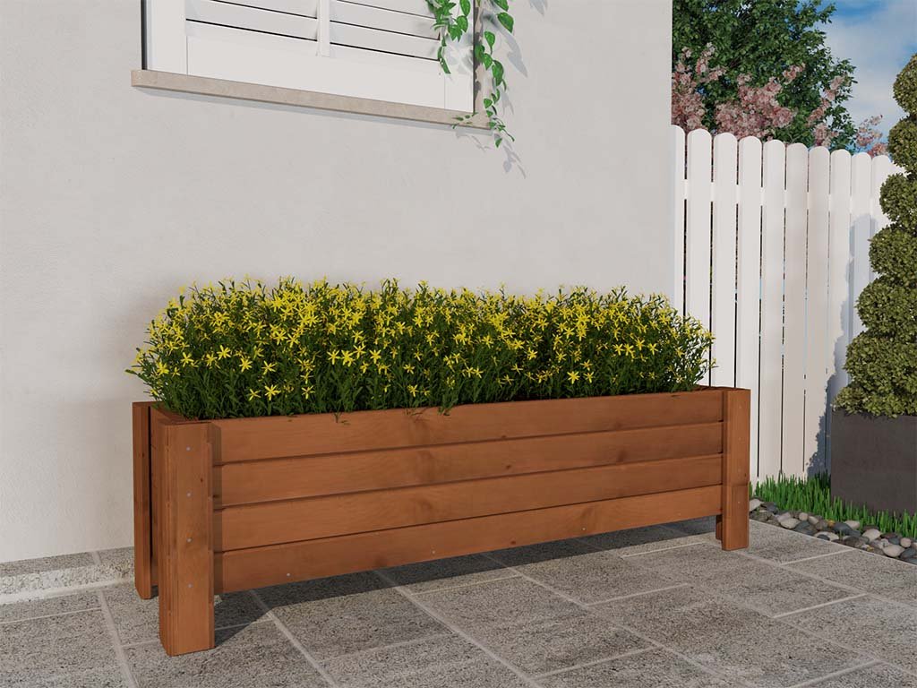 Drevo je morené na teakovú farbu. Kvetináč tým získava netradičný vzhľad a stane sa neprehliadnuteľnou dominantou vašej záhrady.