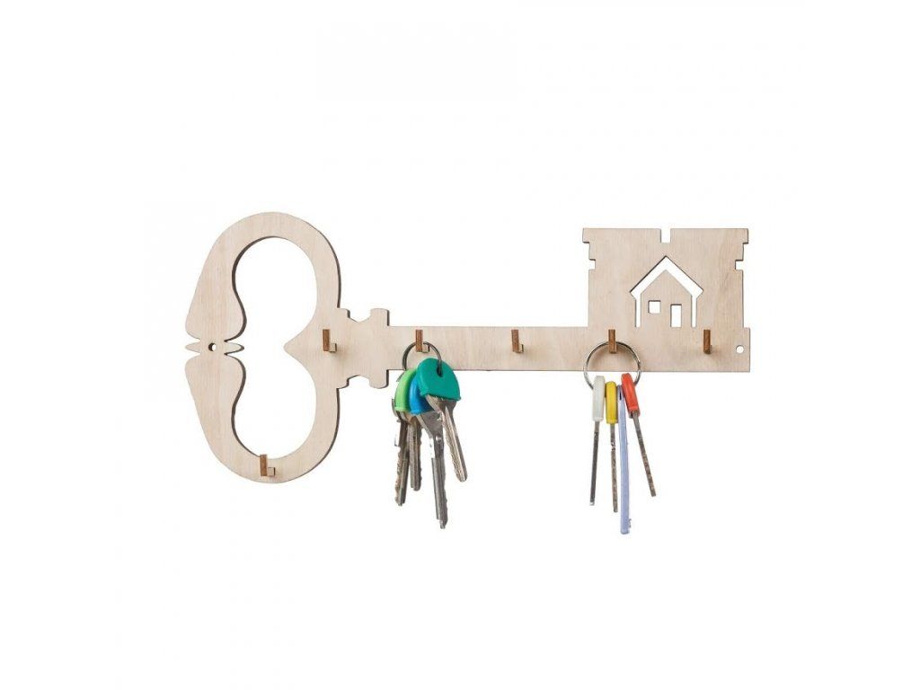 Štýlový drevený vešiak na kľúče v tvare kľúča s domčekom vám zaručí, že budete mať vždy svoje kľúče po ruke.