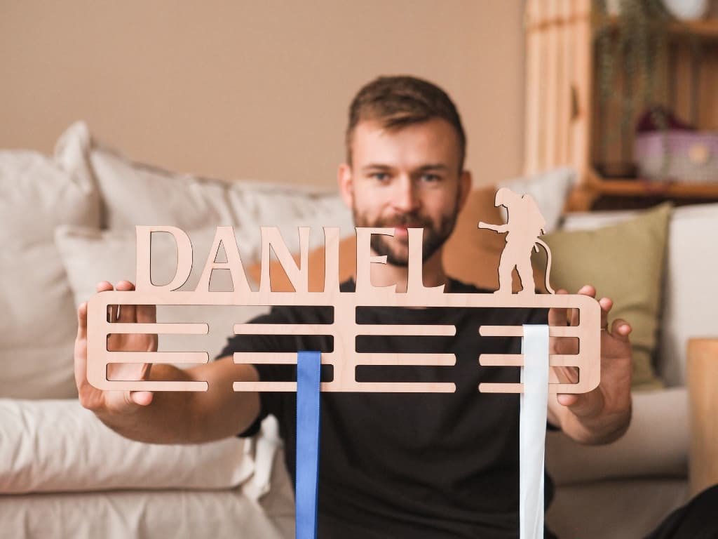 S originálnym vešiakom na medaily s menom nevenujete len obyčajný darček z dreva, ale prinášate prostredníka na uchovanie emócií a praktické uskladnenie medailí. Vlastnú malú sieň slávy potom obdarovaný bude s láskou a hrdosťou opečovávať.