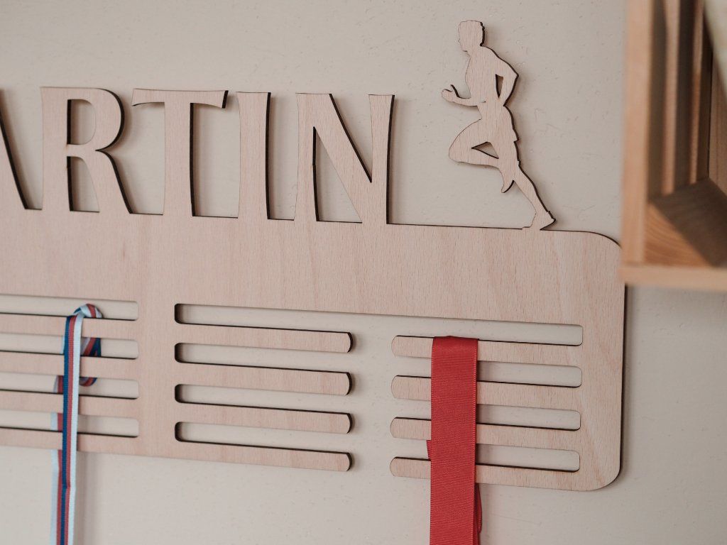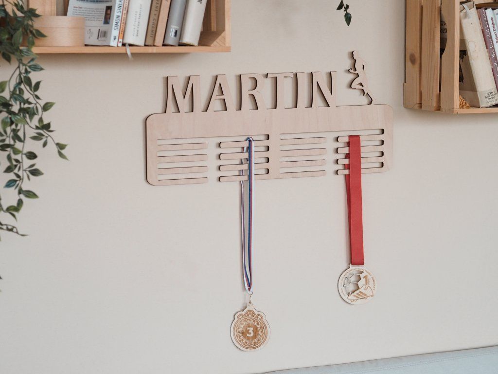 S originálnym vešiakom na medaily s menom venujete viac obyčajný darček z dreva, prinášate prostredníka na uchovanie emócií a praktické uskladnenie medailí. Svoju malú sieň slávy potom obdarovaný bude s láskou a hrdosťou opečovávať. Stane sa miestom, kam si odloží pamiatku na svoje športové úspechy, ale aj štýlovým doplnkom domácnosti. Skvele sa hodí ako darček k narodeninám, sviatku, Vianociam alebo napríklad k významnému športovému úspechu.