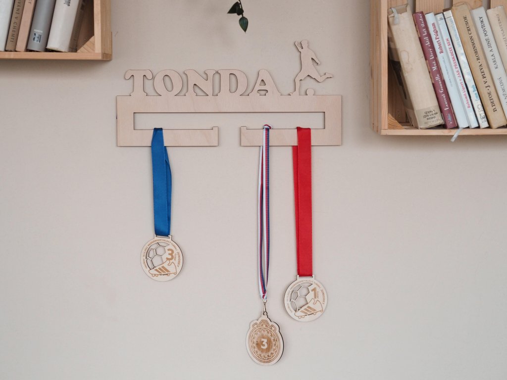 S originálnym vešiakom na medaily s menom a športom nevenujete len obyčajný darček z dreva, ale prinášate prostredníka na uchovanie emócií a praktické uskladnenie medailí.