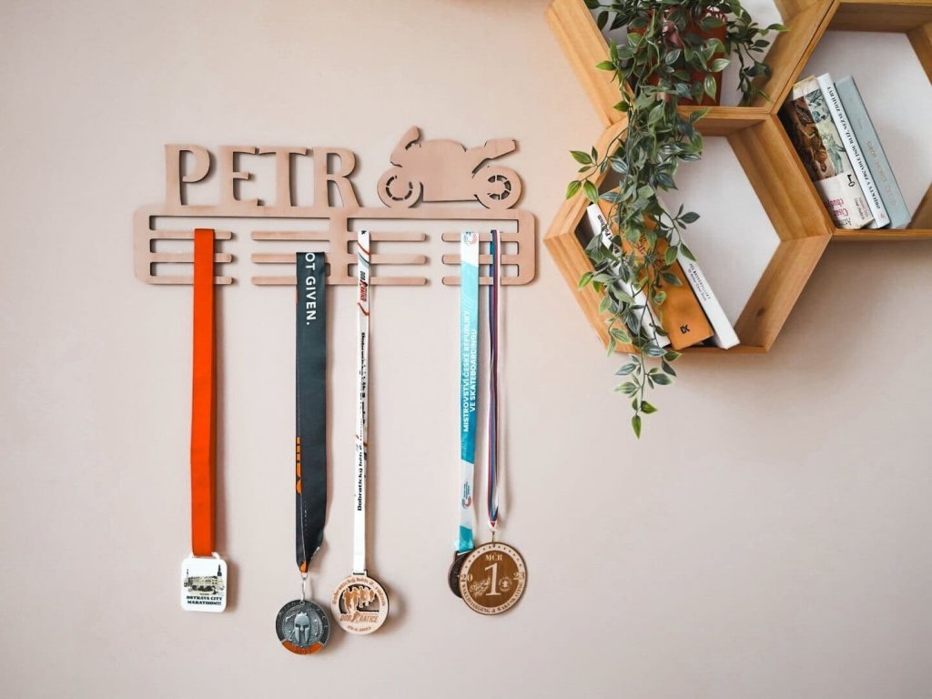 Drevený vešiak na medaily s vlastným motívom