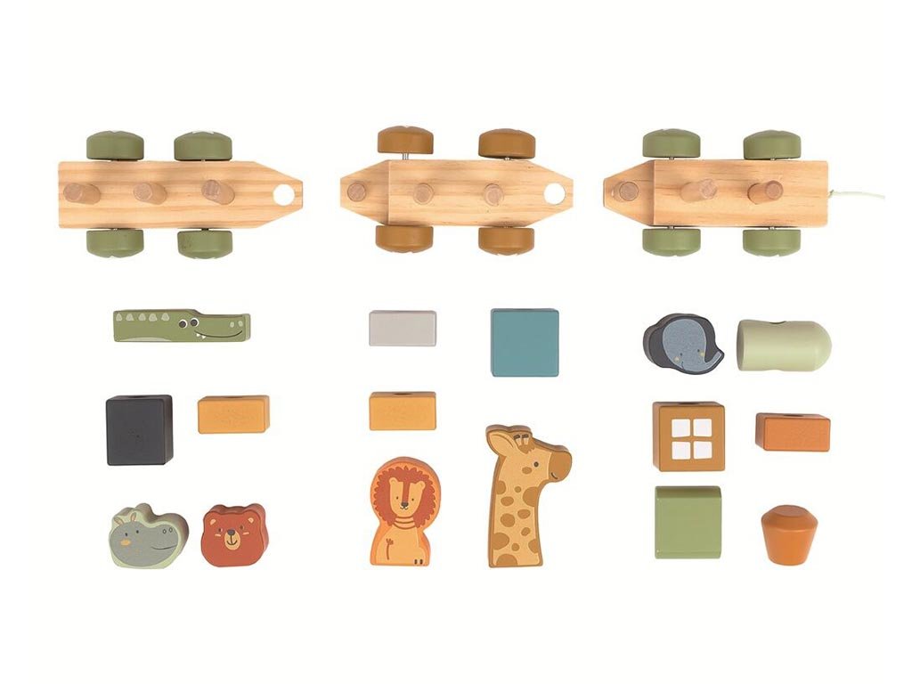 Vagóny určené pre zvieracích pasažierov sú priestranné, takže sa žiadne zvieratko nebude stláčať, a navzájom sa spájajú pomocou drevených zástrčiek. Lokomotíva sa skladá z dvoch nasúvacách častí.