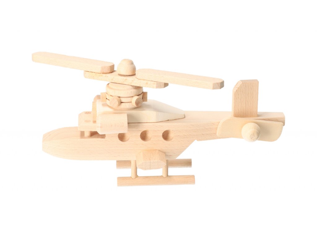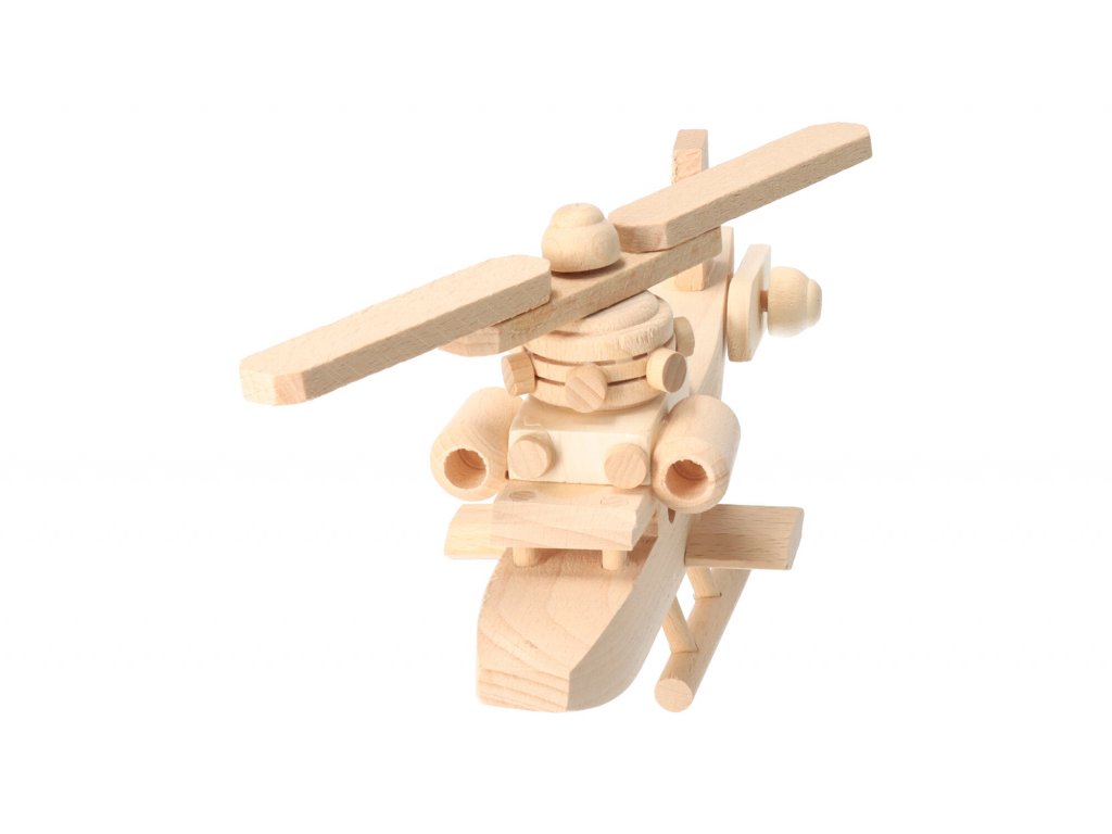 Drevený vrtuľník nadchne všetky deti, ktoré majú autíčok už tak akurát dosť. Obe vrtule sú pohyblivé.