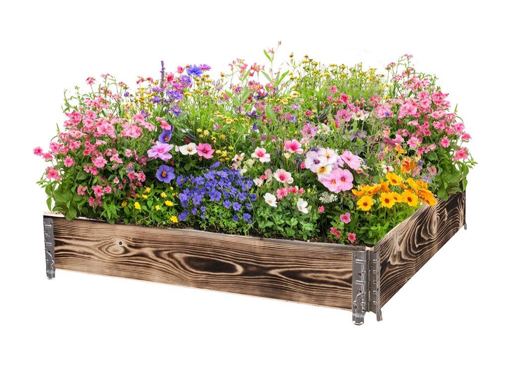 Drevený vyvýšený záhon s kovaním 120 x 120 x 20 cm - opálený